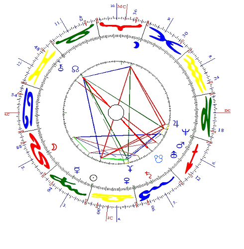 R. ist eine Frau. Mit dem Krebs-AC findet R. ihre Lebensaufgabe durch den Mond im Löwen stark gestellt an der Spitze des 2.Hauses. Dieser Mond soll seine Werte mit Hilfe der eigenen Präsentation des Egos erwerben. Dafür will sie gegenüber dem anderen Geschlecht im Mittelpunkt des Interesses stehen. Gelingt dies, so empfindet sie ein hohes Mass an Freude und Glück. Materielle Werte sind der Gegenwert.